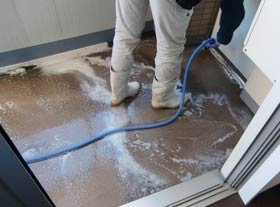 - タイルを上敷きされている場合は、表面のみ洗浄します。