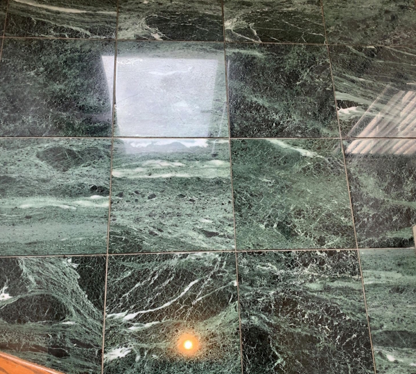赤・緑・茶など、個性的な色柄の石材や、モザイク張り・テラゾータイルの施工にも対応しています。